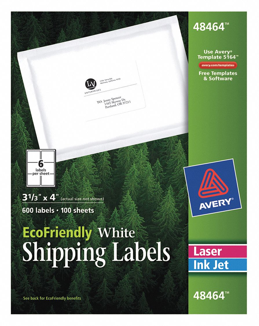 AVERY Laser/Inkjet Label, Label Height 3 1/3 in, Label Width 4 in, Color White, PK 100 - 5NHL1 ...