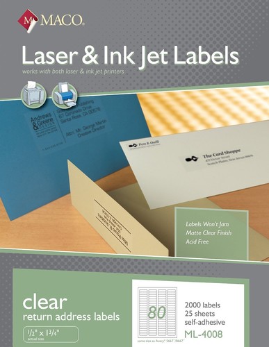 Amazon.com : 30 Pack Self-Adhesive Index Card Pockets with … May 07, 2019 · 30 Pack self-adhesive business card pockets with top open for loading - card holder for organizing and protecting your cards or photos - crystal clear plastic, 4.8 x 3.6 inches Features: Considerate design: The self-adhesive card pocket is double-sided transparent. The front side is smooth and clear for you to use and view information while the back side has a … Amazon.com: Frisco Craft Clear Vinyl Self-Adhesive Laminate 12" … Aug 07, 2020 · Stronger than Avery self-adhesive laminating sheets, Grafix, Heavyweight, Scotch self-sealing laminating sheets, and Duck laminate. Apply Clear Peel-n-Stick Laminate over inkjet magnet, photos, and stickers for a long lasting, smudgeproof protection (note: laminate is not printable). Trim after applying with scissors or razor knife. Clear Address Labels | Staples Avery Matte Clear Address Labels, Sure Feed Technology, Laser, 1" x 2-5/8", 300 Labels (15660) Item # : 765339 |. Model # : 15660. 1,302. Avery Easy Peel clear laser address labels use permanent adhesive for reliable sticking. Address labels for quickly preparing mailings. Dimensions: 1" x 2.625".