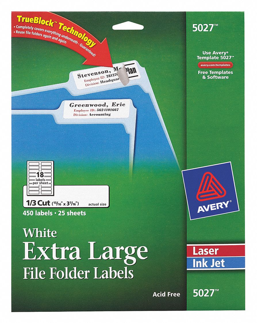 TrueBlock® Extra Large File Folder Labels, 15/16" x 3-7/16", 450 Printable Labels, Permanent, White (5027)